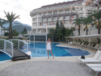 Отель в центре Кемера в 10 минутах от базара, клубов и всего интересного. Собственный пляж ( галька + пирс), зонтики, шезлонги с матрасами, полотенца, столики - всё прилагается. Огромный бассейн с местами для купания для взрослых и детей, есть отдельная лужица-бассейн для малявочек. Думаю, для тех, кто приехал с детьми вообще проблем не будет - мороженное, горки, детская комната, аниматоры, дискотека. В целом территория небольшая - почти всё занимает бассейн, но для любителей прогулок улицы Кемера всегда открыты :)