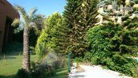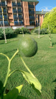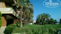Территория огромная, зелёная, ухоженная. Есть и растения, занесенные в Красную книгу. Очень уютно: газончики, цветы, пальмы, фикусы и много всего непонятно-как-называемого, мостики, тропинки, водопад и пр. и пр… И вы обязательно натолкнётесь на дерево, возле которого уши закладывает от стрекотания цикад. Его облюбовало полчище этих громадин. Если вы приблизитесь к ним, для взятия автографа фотоссесии, они перепрыгнут (тут-то их и заметить можно) в более надежное местечко и замолкнут, выжидая, когда вы уйдете. А потом опять трескотня! Но как-то всё хорошо, если где уклон, то дорожка прорезинена, брызгалки газонов – отдельное развлечение для ребёнка, ну вот страсть, как ему понравилось бегать под ними. Фотографии не передают атмосферу уюта территории. Садовнику почёт и уважение!