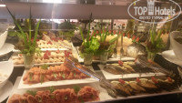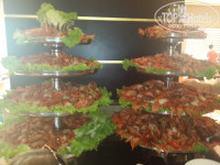 Еда абсолютно обычная как в любом турецком отеле, изысков никаких нет. А "королевские" креветки вовсе не королевские, а обычные, причём приготовленные отвратительно: пресные и безвкусные. Также нас поразили огромные очереди к стойке с грилем и грязная посуда, встречающаяся время от времени, и это факт!