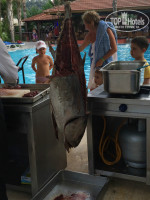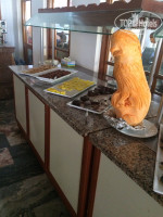 Питание. Все, как в прошлом году. Курица периодически имела легкий запах тухлости. Рыба всякая каждый день, тунец был, форелька, скумбрия. Арбуз, дыня; апельсины сладкие-у нас таких нет, просила порезать – не отказывали ребята повара, виноград и черешня редко, грейпр., сливы. Сладости, овощи, салаты, мы баклажаны любим-их таскали, зелень. Вот маслины на вкус совсем горькие с химическим привкусом были; оливки, в т.ч. и фаршированные. Утром блины, каша овсяная, омлет, яйца, булочки, конфитюры, мед, молоко, йогурты, колбаса-традиционно ярко-красного цвета, рахат лукум, изюм, масло, сыры… Барбекю вечером, овощи лучше, чем в прошлом году. Голодными мы не оставались, выбрать можно, ну уж две недели перетерпеть без свинины и сальца можно. Шеф-повар Алладин всегда на посту, говорит по-русски, поприветствует и пожелает… В баре в этом году утром нельзя было попить кофе или чай, выключены аппараты, т.е. только в завтрак-7.30. На экскурсию ехали в 7.10, нам разрешили покушать, тем более только кашу ели, потом уже «умяли» и поек. В баре вино красное и белое, пиво пробовали, плохо, что в вино лед приходится брать, оно и так «легкое».