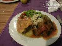 Питание: ходили перед закрытием, на завтрак и ужин, в обед в такую жару +44 было себя не выгнать. На обед покупали 1кг черешни на пляже и кукурузу вареную. Детки были сыты, я кофе с печенькой в номере обедала:)) Питание однообразное, как и везде. Все съедобно, не травились, голодными не ходили. На завтрак были замечательные круассаны с шоколадом:) очень вкусные. Море варенья:) Соевые котлетки, которые все ругают, пришлись очень по вкусу, другого и не хотелось. Картошка фри была каждый день, в общем дети не голодали. В моем меню было: мяско, помидоры огурцы, маринованная фасоль в стручках, маринованные шампиньоны, пол бокала пива и арбуз. Пироженки редко. И то умудрилась набрать вес:))