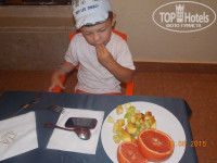 О ресторане: каждый найдет себе что-то по вкусу, на завтрак отличные омлеты в ассортименте, на обед и ужин меню похожи: супы, гарниры (рис, макароны, картошка фри, овощи свежие и тушеные), мясо (очень вкусная говядина, курица), рыба , фрукты есть все время и чередуются (яблоки, дыни, арбуз, груша, грейпфрут, апельсины), напитки (соки, газировки и др) в неограниченном количестве. Салаты заправленные соусами и не привычную еду лучше не берите.
