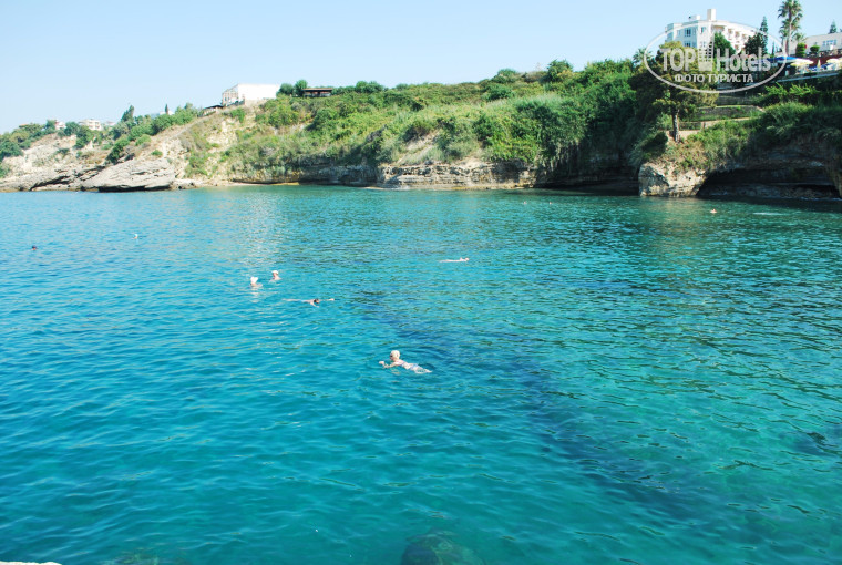 Море и пляж на 5! В заливе который некоторые называют "лягушатником" нет волн, шикарный вход, пологое песчаное дно. Через 10 метров от берега глубина уже больше 2 метров. Конечно, у берега очень много народа, кто же не любит с комфортом постоять в море, любителям поплавать можно просто отплыть подальше или посетить пляж расположенный на пирсе. Да, у этого отеля 3(!) пляжа с кучей террасок с шезлонгами. Найти место можно всегда. А если Вы все же не нашли то, что Вам нужно, подойдите к спасателю на пляже, он и шезлонг найдет и зонтик поставит. "Грязное" море? Не бросайте в него пластиковые стаканчики с пирса и оно будет чистое. Обязательно возьмите маску, на глубине есть красивые камни у которых живут рыбки и черепахи. Полотенца дают бесплатно - меняют через день.