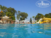 Сам отель по территории очень маленький, но зато удобно - все необходимое рядом))Много зелени, большой красивый бассейн, красивый ресторан Аля-карт, где днем можно спрятаться от солнца и любоваться видом на море. Очень порадовало само расположение отеля - есть куда выйти вечером, кому нужно, все три клуба рядышком. Несмотря на то, что отель находится у дороги, а наш балкон как раз выходил на нее, в номере тихо.