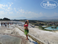 Подъем в 7:20,завтрак и в 8:00 выезд,г.Хераполис(Три развалины)и сам Паммукале.1.5 часа купались,бродили,фоткались , снимали видио и просто гуляли.Билеты в бассейн Клеопатры брать не стали,т.к. вода в искусственных ваннах Паммукале такая же,а там мы наплавались нахаляву)))Нам дали 3 часа,но мы освободились намного раньше,спустились по Паммукале,к кафешкам,взяли пивка,4 банки на 10$,и под деревце спрятались в парке.Все пришли к 12:30 пошли есть,накормили очень неплохо и вкусно,и поехали в Мармарис 3:30 в пути,по пути заскочили в магазин "Оникс"(камни, всякая дорогая ерунда) и текстиль(Белье постельное,одеялки и т.д.)Гид разыграл подарочки,магнитики и открытки,в автобусе,было очень приятно мелочи,просто поднял настроение выигравшим)))