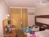 Кровати удобные,большие,убирают каждый день.Полотенца тоже меняют.Из номеров не выносим.Берем полотенца с собой из дома,т.к.на пляж и бассейн не выдают.По телеку только 1 канал русский.Остальные на всяких разных языках(Но мы же не телик приехали смотреть)!!!))хватит что бы ночью убаюкал.