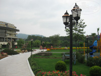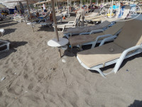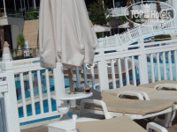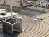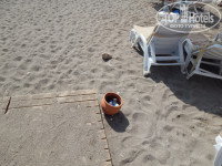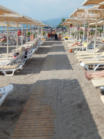 Первое подтверждение моему пессимизму, это территория отеля, да она большая и довольно ухожена, но в таком виде она подходит для средней полосы России, а не для Турции, 20 чахлых пальм по периметру никак не решают вопрос с тенью, а все пространство к обеду уже раскалено. Ландшафт абсолютно не продуман и не пригоден для «романтических» прогулок, а большие поля голых газонов не придают ни функциональности, ни уюта территории.(ну это наше субъективное мнение) Милый мостик через дорогу из полусгнивших досок вполне можно включать в полосу препятствий для солдат новобранцев. Т.е. в целом, дорога от отеля до пляжа это довольно серьезное «путешествие», для простых людей, а не спортсменов разрядников, и все записи о приятности и чуть ли не полезности в борьбе с ожирением данного похода, это от лукавого. И тащиться на пляж и обратно так далеко, это серьезный минус отдыху. Наличие шатла на 5 мест ни как эту проблему не решает. Ты будешь долго стоять ждать, а потом еще наглые представители коренной национальности влезут без очереди и что то говорить им бесполезно, а бить морду - нарываться на международный конфликт, так две недели в основном пешочком оттопали обливаясь потом. Зона отдыха у пляжа, тоже мягко говоря, неоднозначная. Непонятное заброшенное здание. Древний детский городок на солнцепеке.18 сосен-не поленился пересчитал. И отдельные слова пляжу. Впервые вижу, что нет бич боя и по большому пляж можно назвать более звучно-Полигон твердо бытовых отходов. И дело не только в свинтусах из Турции и нашего дорогого Отечества, которые не знают элементарных правил приличия, а просто там вообще не убирается, а весь мусор, как на полигоне пересыпается песком. К 17 часам там находиться просто отвратительно, но и придя в 9-30 следующего дня ты застанешь тоже самое, только грязной или разбитой посуды еще прибавится. Я не понимаю, зачем они делали деревянные тротуары между рядами и к морю, когда их никто не подметает и они стоят засыпанные раскаленным песком. У душа песок тоже не убирают целый день и ты стоишь в грязной жиже. Я не говорю про грязьнющие лежаки и столики, которые не знали обработки никогда. Везде где мне, до этого, посчастливилось отдыхать, по пляжу сновало несколько человек, которые убирали мусор из горшков, уносили посуду, а вечером убирали матрасы в специальные сарайчики, граблями и катками проходили весь пляж и ровненько выставляли шезлонги, тут такого нет и в помине. Да, пера автора достоин еще один персонаж, он конечно не играет никакой роли, но все же- это спасатель. Просто песня- тщедушный дедушка лет 65 и глядя на него ты понимал, что если что, то спасение утопающего дело рук самого утопающего, как писали классики.