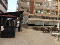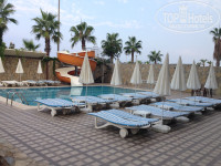 Ездили с подругой. Отель безумно понравился. Мы приехали около 11. По правилам отеля, заселение в 14-00, в час были в номере. Все чисто, аккуратно, кондиционер работает, холодильник тоже (но только когда кто-то находится в номере, так как подача света идет от карточки-ключа от номера), телевизор не включали ни разу, вода горячая/холодная, все как полагается. В номере шикарная длинная лоджия, там есть два стульчика; также в комнате есть стол, тумбочка, шкаф (достаточно большой, с тремпелями). Уборка осуществляется ежедневно, постельное белье и полотенца меняют раз в три дня. Сотрудники рецепшн милые, приятные. Если возникают какие-то вопросы - все решается, никаких проблем, они все русскоговорящие. Отель включает два корпуса, в каждом есть лифт. Рецепшн и ресторан с сауной (она бесплатная) и хамам (платная, но мы туда заходили обливаться водой после парилки) находятся в главном корпусе (сразу при входе) на территорию отеля. Wi-fi платный - 10$ (мы были вдвоем и вышло по 5$). Скорость нормальная, не скажу, что летает, но для общения в соцсетях сойдет. Бассейны есть, два. Один (который перед главным корпусом) с горкой, небольшой, шезлонги, зонтики и матрасы прилагаются (бесплатно). Между двумя корпусами еще один бассейн, побольше. Там же бар, анимация (небольшая сцена), музыка, рядом еще стоит гриль и после обеда (по-моему, с трех до 16-45) можно сделать бургер (парень жарит котлеты, там же стоят нарезанные овощи (салат, помидоры, огурцы соленые), булочки, кетчуп, майонез. На баре можно заказать газировку, сок, пиво, вино и тд (не употребляю, потому точно не скажу). Рядом с баром стоит куллер (иногда его убирают после 23:00, иногда - нет, но с утра он уже стоит). Вообще питание мне очень понравилось, учитывая мои предпочтения салатам и прочей зелени. Да, всегда есть курица, каждый вечер (за полторы недели блюдо ни разу не повторилось, то есть приготовлена она всегда по-разному). Также была рыба (вроде бы через день), ее готовили на гриле на улице, сердца куриные, а еще оооочень вкусная баранина. Еда очень разнообразная - овощи в любом виде (тушеные, на пару, жаренные, запеченные), очень много салатов, конечно же, помидоры, огурцы, перец, кукуруза (и консервированная, и приготовленная на огне с разными овощами), рис, паста, картофель, разные соусы. Сладкое тоже есть, всяко-разно. Из фруктов на завтрак всегда были грейпфруты, на обед - яблоки и очень сладкие апельсины, а ужинали мы арбузом. Очень вкусно в салат добавлять гранатовый соус - там он тоже есть (турки его любят и не зря!). В общем, прикрепляю фото и не буду много писать, но точно скажу - голодными не останетесь. Плюс к этому еще всегда есть фирменные суп-пюре (это дело турки тоже любят), свежий хлеб. Ах да, на улице и в ресторане стоит огромный самовар с кипятком и крепким турецким чаем, а также кофе-машина (можно сделать латте и прочую ерунду). Завтрак с 8 до 10, обед с 12:30 до 14, а ужин - с 19:00 до 21 и о перекусе я уже упоминала. Очень голодным рекомендую приходить за минут пять до начала приема пищи занять очередь (не пугайтесь, просто на обед и особенно ужин народу полно, просто вам будет труднее найти свободный стол (не переживайте, места хватит всем). Просто мы с подругой всегда кушали за одним и тем же столиком. Тем более люди любят вдвоем сесть за стол для шестерых, например. Так чтобы знали, что лучше прийти на пять минут раньше или же после минут 