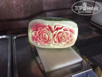 5. Питание очень шикарное! Нам предлагает богатый выбор блюд турецкой и российской кухни. Повара очень вкусно готовят. Еда самая различная, голодным точно не останешься! Фруктов достаточно (арбуз, дыня, сливы, виноград, грейпфруты, яблоки) овощей тоже очень много…Очень вкусный хлеб. Есть различные мясные блюда. Так же есть автомат машины с различными напитками (кофе, капучино и д.р) Официанты и бармены, работают очень быстро и аккуратно. Молодцы! Всегда улыбаются, и желают приятного аппетита, улыбайтесь и вы в ответ! На ужин парень вырезал из арбуза различные фигуры, очень красиво. Перед обедом парень пек различные пиццы, они очень вкусные, кушайте все!