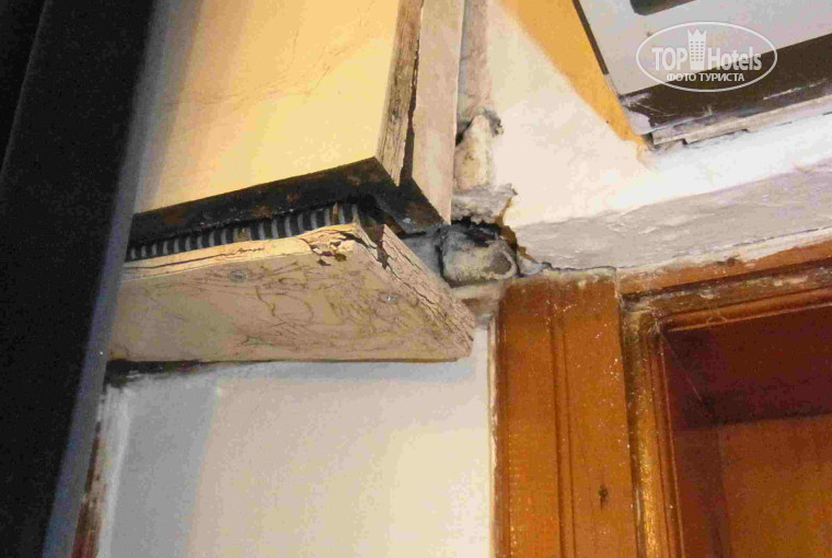 Теперь дальше. После того, как эмоции улеглись, начал осматриваться вокруг. Само здание очень красивое, мраморные полы, мраморные лестницы, тут без всяких вопросов тянет на 4 звезды (в 5-ках никогда не был, поэтому не ставлю выше). НО! Мебель вся старая. По моим ощущениям всему, что стоит в номерах, уже лет 15-20. Изъеденные временем шкафы, матрасы, полки (на приложенных фото можно увидеть шкаф, тумбу, выход на балкон и простыни на кровати, которые мы увидели при въезде). Везде дыры, от окна отваливается деревянная панель. Шкаф по размеру вполне хороший, но внутри всего 2 вешалки. Казалось бы копеечные траты - купить 10 вешалок в номер, но нет, не судьба. На балконе вешалки, вмонтированные в стену, уже выпадают из креплений. Зеркало в номере с трещиной. Судя по ощущениям, они просто ждут, пока всё развалится полностью и люди перестанут ездить.