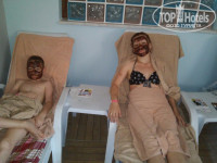 Местный хамам мне не особо понравился, хотя до этого я ни разу в хамаме не был и наверно ожидал чего то большего. Сначала нас попарили в простой сауне с ароматом пихтового масла, сделали шоколадную маску ,потом таджик отвел нас в сам хамам и на мраморе без подогрева начал сдирать с нас, по его выражению, старую шкуру. Сначала на сухую, потом с какой то вонючей пеной из пластмассовой канистры. Потом массаж. Вышел к нам худощавый мужик и на ломаном русском, с помощью женщины администратора из средней азии, объяснил, что он типа мануал от бога и делает чудодейственный точечный массаж. Ну не знаю, я чего то засомневался в его квалификации, чего такой талант пропадает в каком то отеле. Жена попала к нему, а я к женщине турчанке которая делает классический массаж. В принципе массаж мне понравился. А вот жена вышла от мануальщика с болями по всему телу. Цена всему этому 25 баксов с человека. Дальше нас стали уговаривать еще на 5 сеансов массажа, типа со скидкой всего за 100 баксов с человека , что у нас якобы закупорка сосудов, межпозвоночная грыжа и мышцы в тонусе. Я сразу отказался, а вот супруга рискнула и согласилась, но на классический. После третьего сеанса классического массажа моя супруга пришла вся в синяках и рассказала, что эта женщина заболела и ее заменила ученица этого мануальщика и что весь сеанс она корчилась от боли. Особенно выделялся синяк на предплечье размером и цветом с боооольшуууую сливу.