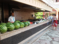 Одуревших от шока и от жары нас повезли в этот "отель". Сам корпус и номера не плохие, но все остальное просто ужас. Как театр начинается с вешалки, так и отель с ресепшена – там никто не говорит на Русском! Просто вообще, даже здрасьте! Кое как пообщавшись на школьном английском с ресепшеном, нас заселили и предложили пойти отобедать. Жалко я не сфотографировал "разнообразие" и "качество" блюд предложенных в этой отелевской рыгаловке. Читая отзывы о питании в этом отеле я даже и представить не мог, что так можно издеваться над иностранными туристами. Заветренные и полу завядшие огурцы с помидорами, на салаты, которые чем то заправлены, вообще смотреть страшно, гарнир - макароны и картошка типа по деревенски (вроде приличные), на горячее соевые шарики и какие то маленькие сосиски, из чего сделанные я так и не понял, про выпечку и фрукты я даже и говорить не хочу, их просто нет. Спасали нас от голода только вареные яйца. Кое как "заморив червячка" решили выяснить у « библио глобус», что случилось, где произошла ошибка и с кем они нас перепутали заселив сюда. Найдя в ближайшем уличном магазинчике женщину-продавца говорящую по нашему мы выяснили, что дешевле звонить в Россию с таксофона и купив у нее карточку начали звонить нашему турагенту, которая нас уверяла, что все будет хорошо, по указанному, на данной нам в офисе визитке, номеру.