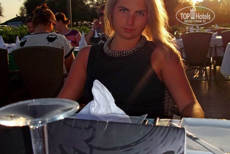 Питание: повара все готовят при вас. Завтрак: яйца вареные, яичница, омлет с разными составляющими, блинчики, сосиски, каши, овощи, много выпечки, пирожные, булочки, круассаны, варение, йогурты, нарезки (сыр, колбаса), хлопья с молоком, чай, кофе, соки. Обед и ужин: рыба (дорада, сибас, еще какая-то двухметровая рыба, которая по вкусу очень напоминает мясо), люля-кебаб, курица, утка, индейка, печень, говядина, баранина все это в разных вариациях (гриль, тушеные, жареные, пареные), нарезки (сыр, колбаса), овощи (капуста, помидоры, огурцы, салат, зелень), фрукты (арбуз, дыни, апельсины, яблоки, бананы, нектарины, сливы, грейпфрут и т.д.), салаты различные, очень острые соления, рис, плов, картошка-пюре, овощи запеченные, суп несколько видов, холодные и горячие закуски. В общем всего очень много и очень вкусно!!! Особенно вкусно блюда-гриль на улице! Очередей нет, вне зависимости от того, придешь рано или позже. Столики всегда можно найти свободные. Из официантов к вам скорее всего никто не подойдет и не спросит, что принести выпить, приборы придется самим искать, салфетки, соль. Однако если поймаете официанта, то он с радостью Вам все принесет. Алкогольные напитки также можно взять самостоятельно в баре. Очень вкусное мороженое (около 8 видов).