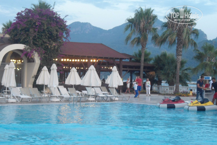 Ну, как кратко могу оценить отель? не то, чтобы шикарный, но и не "ужас- ужас", как тут некоторые пишут! Видимо, товарищи привыкли отдыхать в отелях уровня Хилтона, не иначе! А здесь- обыкновенный турецкий отель! Есть хуже, есть лучше! Сразу скажу - не понравилось : номер- цокольный этаж, туда старайтесь не попадать! Сыро, комарики летают! Поэтому совет- если все- таки попали туда- прикрывайте дверь в санузел и пользуйтесь всякими фумитоксами! Далее- вечерние шоу! Вот это- действительно, приглашенных артистов нет, работают сами в меру своего вкуса и таланта! Пресловутые осы- мы ели в здании ресторана, ос там нет! Фрукты- ну, да, нектаринов- персиков не было, но мы так любим арбузы и дыни, что в принципе, если они есть в нашем поле зрения, едим только их!Так...Что еще... Лежаки- ну, мы вставали в восьмом часу, позже просто не считала нужным, поскольку и завтрак, и море, и сыну на горки, все это хочется успеть! Так вот, в восемь- начале девятого выходили из номера, проходя мимо пляжа кидали полотенце на свободные лежаки и шли на завтрак! Еда была вкусной!!!!!! Хоть это вопрос и субъективный.... Персонал- в основном неплохой, кроме девицы блондинки с ресепшн! А так- в принципе, все , что мне от них было нужно- выполняли! А что еще нужно??? Чтобы падали ниц и говорили "Чего изволите, моя госпожа?" Да, еще отрицательный момент- платный сейф!!!!!!! Но в целом- недостатки отдыху не помешали, вернулись довольные! Так что, народ, просто поезжайте с хорошим настроением! Вы же отдыхать едете, в конце концов, а не пыль под кроватью искать! Если задаться целью найти недостатки, это всегда можно сделать! Кроме того, ну справедливости ради, это же Турция! Почитайте отзывы на любой Турецкий отель- увидите, недостатки есть везде! И еще! Тем, кто думает, что отвалил тааакие бешеные деньги за отель, советую вспомнить про курс доллара! На самом деле, отель средний по фене, даже недорогой, если пересчитать !Короче! Не думайте о плохом, поезжайте с настроением, тогда все будет отлично!!!!