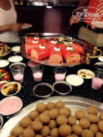 Столовая (не ресторан). Хорошая вкусная пища, дома точно такого разнообразия нет. Малышка кушала хорошо, голодными не оставались. На завтрак: жареное яйцо, оладушки, йогурт, варенье. На обед и ужин: тушеное мясо, рис, пюре, брокколи, печеная картошка, спагетти, макароны, все для салата, сыр. На десерт: сладости, арбуз, виноград, сливы, яблоки. Хороший рацион на каждый день для ребенка. Есть кофемашина. Вечерний гриль практически не брали, т.к. отстоять огромную очередь (10 минут) я не имела возможности. Барами не пользовались, разве пару раз, в Lobby bar попили чай в стеклянном стаканчике.