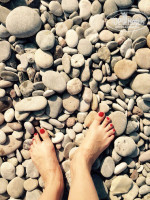 Пляж: Красивое море. Галечный пляж. Мало народу. Резкая глубина. 5 дней шторма, (опасного для здоровья), не купались. Периодическая пленочка на поверхности (утром), быстро исчезала в пучине морской. Лежаки – всегда найдется свободный. Песок есть в тенечке под навесом, достаточно далеко от моря (относительно маленьких ножек).