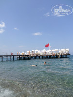 Отдыхали семьей из 4 взрослых человек в Кемере впервые. Встретили душевно, размести сразу, так как приехали около 18 00. У нас был забронирован семейный номер дублекс - хороший номер с видом на море и горы, но лестница на второй уровень крутая. Уборка в номере вначале так себе, потому что на втором уровне не менялись полотенца и не пополнялись гели, шампуни и др., но оставили заявку на ресепшине и все решилось). Питание на самом высоком уровне, очень разнообразное, всегда достаточно мяса, рыбы, фруктов, сладостей, даже раков давали, чем удивили. Ходили в итальянский ресторан, действительно проблема записаться, в первый день не попали, но потом я подходила за 30 минут до начала записи, не стоит сильно расстраиваться, если вы в него не попадете. Анимацией мы никогда не интересовались, но многие хвалили. Персонал приветливый и доброжелательный, любые проблемы практически быстро решаются. В качестве минуса можно отметить скользкий пирс в районе душа, я упала, сейчас лечу синяки и растяжение, но спасатели быстро среагировали и наложили лед, к врачу не обращалась, так как сама медик и понимала, что сильный ушиб, но говорят я такая не единственная, просили постелить коврик в этой зоне, но до отъезда так вопрос и не решился. Берегите себя!!!!