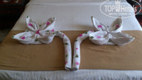 Номер. 412 в 19 корпусе. Корпус недалеко от моря и бассейна sweet&creep. Номер брали стандарт, все работало замечательно. Мебель, конечно,не новая, но мы этого и не ждали. Уборка была ежедневная и достаточно хорошая, даже без чаевых, а если с чаевыми или шоколадом, так вообще замечательная и с декором. Полотенца меняли каждый день, шампунь докладывали. Два раза были проблемы с водой, звонили на ресепшн, через час все было ок. Проблема была не нашего номера, а в отеле, а может даже и в районе в целом.