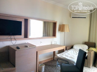 Номера старенькие, некоторые предметы мебели покоцаны. В душе иногда идет не очень теплая вода, но так как на улице была жара, мы сильно этому факту не расстраивались. В номере мы жили втроем, там стояла одна большая кровать, когда мы попросили дополнительную, просто при нас раздвинули кресло и заправили постелью. Не очень :) Телевизор, фен, кондиционер - все рабочее. По обе стороны кровати стоят лампы. Вода в минибаре пополняется только 1 раз, дальше можно было доливать ее в кулерах, которые есть по всему отелю. Полотенца, постельное белье менялись регулярно. На полу ковролин. Если открываешь балкон - кондиционер не отключается.