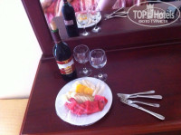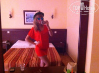 Приехали мы около 15.00. Нам дали номер на первом этаже оставить вещи и через час пообещали заселить в хороший номер. Ровно через час нас заселили в номер на 3 этаже с видом на море и горы. Номер отличный и уютный. Все работало. Ничего не текло. Все прекрасно. Так как мы молодожены, официант принес даже в номер комплимент от отеля - вино и фрукты)))