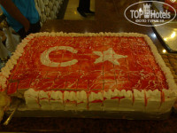 Еда, кормили на убой : курица,утка,рыба, соевое мясо, тушеные овощи, салаты, овощи, оливки, сыры сосиски короче много еды!!! Сладости класс там,за фрукты шла борьба, особенно за сливы)) арбуз ка