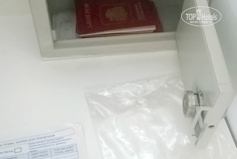 10.) Сейф в номере платный 4 доллара/ночь. Считаю, что это неоправданно дорого (на Кипре сейф в номере стоит 2 доллара/ночь), т.к. размер у сейфа просто смешной – туда влезает только кошелек, паспорта, телефоны. Ipad mini и конверт с документам из турагентства у нас уже не влезли. Закрывается на маленький ключик, у нас дома на такой ключик закрывается почтовый ящик. Если бы заранее знали, что здесь такой маленький сейф, то выкупать бы его не стали. Зато вы, будущие туристы этого отеля, теперь это знаете.