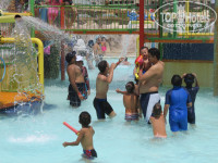 Аниматоры с 10-00 активно приглашают отдыхающих на различные мероприятия (волейбол, водное поле, утренняя гимнастика и т.д.). В это же время открывается аквапарк. Аквапарк хорош, есть детская зона и горки для более взрослого населения. Но вот незадача, обычно за ковриками и водными кругами приходится охотиться. Обслуживающий персонал где присутствует наводит порядок, выстраивает очередь, но все таки кругов не достаточно. Есть цветовое разграничение (желтые круги одна группа горок, синие другая). За этим опять же пытаются следить.