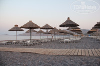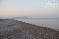 Пляж - мелкая галька, сильно раскаляется - от лежаков до моря надо идти в шлепанцах. Заход в море идеальный, нет ни камней, ни ежей, ни водорослей.