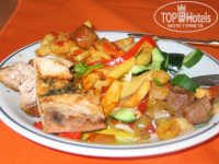Отдыхали с мужем и 2мя детьми 10 и 7 лет с 6 по 13 августа 2015 года. Разместили быстро в хороший номер на 3 этаже с видом на море и бассейн. В номере порадовал чайник, поили дочку пред сном чаем с молоком (молоко покупали в магазинчике на территории отеля). Кондиционер холодил сильно независимо от настраивания - что на 25 , что на 18 градусов, все равно холодил на 18. Питание - мало мяса, даже курицу раздавали по кусочку в тарелку. Официанты работают хорошо. Фрукты - арбузы, дыни, вкусные сливы, виноград, яблоки. Блюда подписаны. Один час в день раздают мороженое, вкусные пончики политые сиропом. Анимация - водное поло, соревнования в бассейне, дартс, аквааэробика. На рецепшн приветливые сотрудники. Убирали номер каждый день. На день рождения мужу в номер принесли тарелку с фруктами и бутылку вина, номер был украшен цветами. Пляж близко очень. Море - грязное из-за людей, бросают в море что ни попадя. Лежаков мало. Пляж песчаный, вход хороший для детей, но бывают камни большие.