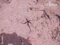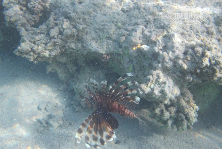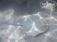 На глубине от полуметра до метра живут скаты около 30 см в диаметре. Скаты безобидные, людей сильно не боятся. Так же на небольшой глубине живет несколько довольно крупных и красивых рыб. Абсолютно непуганых и даже наглых — плавают прямо между рук.