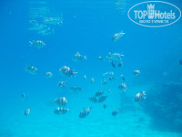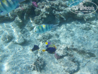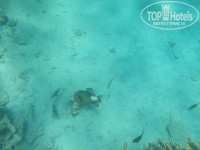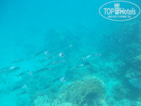 Чем дальше от берега тем больше живых кораллов и разнообразней рыбы. Видели мурену, говорят заплывала маленькая рифовая акула, мы не видели.