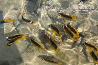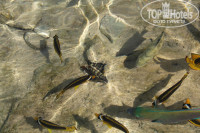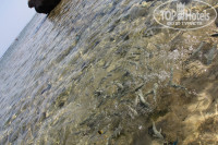 Вход в море как с понтона,так и с берега. 2 раза за 10 дней вода в море ушла,а после обеда опять приходила.Большое разнообразие рыб.