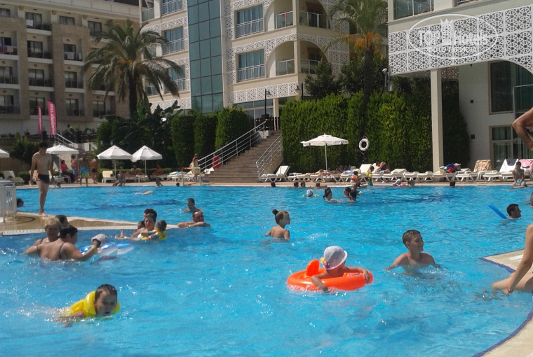 Отдыхали семьей в августе 2015, дети 3 и 14 лет. Заселение вовремя, номер чистый. Потом правда убирались не очень тщательно, несмотря на оставленные чаевые. Но дискомфорта это не вызывало По питанию не очень хорошие воспоминания остались только у старшего сына - в частности о завтраке - каши он не ест, оливки тоже, колбаса и сосиски не вкусные, сыр соленый - тоже на любителя. Обходился хлопьями и яйцами - чтоб дотерпеть до фри и гамбургеров. Бассейн классный, море тоже, (заход в море конечно немного не очень но это недостаток места, а не персонала), к бару и персоналу претензий нет. Все очень дружелюбны и говорят по-русски. Анимация понравилась взрослая, из детского только вечерняя дискотека. Днем ребенку было там скучно. Он еще не усидчивый и долго заниматься одним делом ему скучно. О детском городке отзывы тоже положительные. На территории очень чисто, убирают каждый стакан. Правда под лежаками на пляже мусор лежал несколько дней.