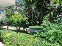 Территория отеля: территория не большая, но очень уютная, вокруг корпусов идет извилистая дорожка, а вокруг сад с прекрасными, ароматными цветами. Рядом с корпусом С стоит стол для настольного тенниса, имеется зона для детей, где они могут порисовать, там же можно поиграть в дартс.