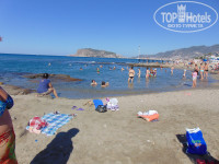 Пляж хороший, песчаный с мелкой галькой. Заход в море нормальный. Море теплое, чистое, были волны, было очень здорово в них купаться. Лежаки и бар платные, но нас это не расстраивало, т.к. когда мы покупали путевку, мы знали об этом. Большинство людей загорали на полотенцах на песке.