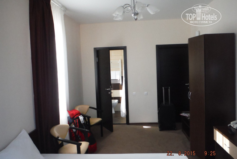 Номер на 5 этаже. Из окна вид на горы и кусочек моря. Большой, светлый, все новое. На полу ковролин. Огромный минус-отсутствие балкона, вещи сушить негде. Когда пошли менять номер, сказали что свободных нет и вряд ли будет. Потом мы уже привыкли к этому номеру и не меняли его.