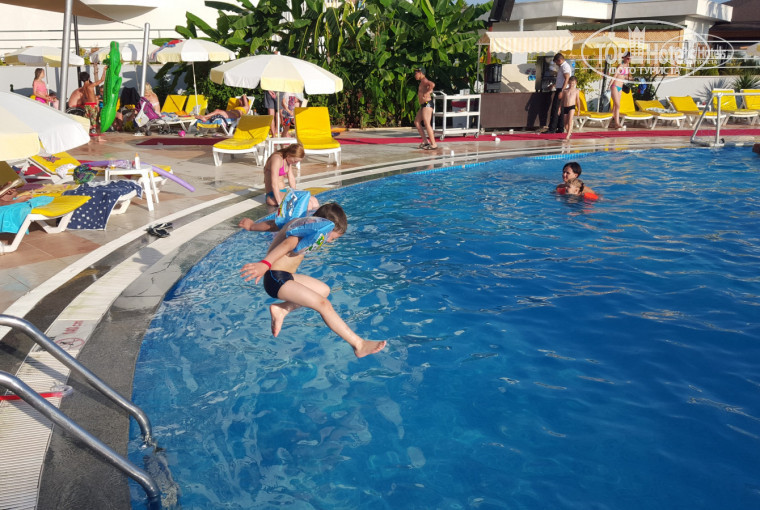 Мы - товарищи неискушенные и поэтому в целом отдых оставил неплохое впечатление. Ребенку понравился бассейн и прыгать с пирса на море, нам понравилось питание и ненавязчивая анимация, не мешающая спокойному отдыху. По ночам было тихо. Что не понравилось: гид продает втридорога экскурсии( мы не знали и купили у него одну),остальные покупали на рынке у Бахи) В номере почти не работал фен и иногда стелили белье с дырочками или оставляли описанное ребенком одеяло непоменянное. Старомодный номер в плане мебели....немного расстроил. Никаких лебедей из полотенец и лепестков,несмотря на чаевые,которые мы пытались оставлять-разницы в качестве уборки не было вообще никакой. Огромной ошибкой было записаться на дегустацию в ресторан Ализе ( а ля карт) в отеле- нас там отравили. Хорошо ребенок отказался есть их еду. Между прочим есть там было толком нечего,еда посредственная....из приличия поклевали и зря. На горшке сидели сутки.И это в последний день отпуска....Не ходите туда,в обычном ресторане и вкуснее и выбор хоть есть и не давали бяку). От отеля ходит рейсовый автобус в Аланию, можно самостоятельно кататься и на базар и в магазин за шмотками( есть там излюбленный русскими магаз Вайкики с фиксированными ценами на 3 этажа на конечной автобуса). А так торг уместен везде и всегда) Можно записаться на бесплатный шоппинг - лажа полная, вас везут в дорогой ювелирный,магазин меха и кожи и торговый центр дорогущщий, впринипе вы можете доехать до него и пойти на рынок рядом с ТЦ. Ребенку очень понравилась комната для игр и мини-диско каждый вечер. Надеюсь,мой отзыв будет полезен новичкам.
