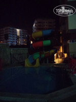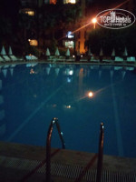 Ехали от аэропорта ночью 3 часа. Отель состоит из 3ех корпусов, между ними дорожки, бассеин, рядом с ним маленький лягушатник и там же горка, также на территории хаммам, столовая-ресторан, бар, рецепшен и небольшая территория со столами и стульями, баром и сценой для вечерней анимации. Рядом с корпусом С в подвале небольшого здания клуб. Территория, собственно, не для гуляния, а для прохождения от одного здания к другому. Ну чистенькая, зеленая. Постоянно видела как моют дорожки, поливают цветы. На рецепшене при заселении в паспорт положили 20 $ ,все администраторы вежливые, говорят по-русски, нас достаточно быстро заселили в корпус С на 5ый этаж. Был боковой вид на море. Вид на море прямой открывается только из некоторых номеров первого корпуса А. Номер небольшой, чистенький. Достаточно просторный балкон, ванная комната. Все не слишком новое и крутое, но еще и не потрепанное особо жизнью. Главное, что все работало - кондиционер, телевизор, холодильник. Телевизор - 3 канала - 1ый, россия 24 и музыкальный какой-то. Фен не включала даже, но видела в ванной. Всегда беру свой и вам советую!