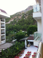 Были в последнюю неделю августа с семьёй в этом отеле, тур оператор туи, без проблем перелет туда -обратно с компанией Пегас. Номера в отеле располагаются таким образом, что из любого номера видны и горы и море, отель большой ,красивый, чистый, в номерах на полу ковролин, большой балкон, если нужно что нибудь посушить, сохнет очень быстро, в туалетной комнате полноценная ванна, шампунь, мыло, гель для душа.,сейф платно 2$ в день по желанию, до моря удобней идти через подземный переход (40 шагов), там чисто и освещено красиво, я по начитавшись негативных отзывов, весь отдых искала подвох, так и не нашла), не слушайте негативных людей, в этом отеле можно отдохнуть на полную катушку, каждый может найти занятия по душе, хотите развлекайтесь с аниматорами, хотите спокойно лежите на пляже , там звучит приятная музыка, лежаки занимать бегать с утра не надо, их много, для детишек есть все условия для отдыха с ними весь день до вечера занимаются аниматоры, вечером в амфитеатре развлекаловка, в 12 дискотека. По поводу еды никаких нареканий нет, в любое время приходите на обед и всегда разнообразия предостаточно, если чего то не хватило то через пару минут поднесут еще, смешно было наблюдать за бегущими к открытию людьми,) стыдно за голодную Россию). С утра мясных блюд горячих не было, зато в обед и ужин😋, желудка не хватает чтоб все перепробывать,