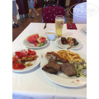 Питание (обед с 12-30 до 14-30 и ужин с 18 до 20). Вкусно и много, НО! В ресторане Хилтона кормится и соседний Хелиос. Поэтому не смотря на размер ресторана и обилие столов, иногда сложно найти место, приходится ждать стаканы и приборы. Бывает выстраивается очередь в бар (не такая, чтобы очень большая - можно постоять). Много овощей свежих и маринованных (очень вкусных), фруктов (виноград, сливы, персики, нектарины, яблоки, арбузы), тортики (за которыми вечная очередь - не любитель сладкого, поэтому нахваливать или ругать не буду, но свежие), мороженое (2 холодильника - один возле тортов и кофе-машин, другой возле выхода на веранду). Мясо - мясо, а не неведомая фигня, как бывает в Турции и Египте. И телятина, и говядина, и свинина, и курица. Рыба была всего 2 раза. Один раз за неделю был гриль - очень вкусно.