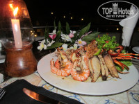 Вам обязательно предложат заказать морепродукты в Аля карт. Мы заказывали «seafood plate»(Лобстер,4 кальмара,3 краба,3 больших креветки, 4 барракуды, под вкусным маслянно-чесночным соусом) и совсем не пожалели. Тем более цены даже чуть дешевле чем в ресторанчиках на пляже. Примерно 3000 рупий(в меню у них указанно 2600,но к этому они прибавляют 20%НДС и 10% за обслуживание).