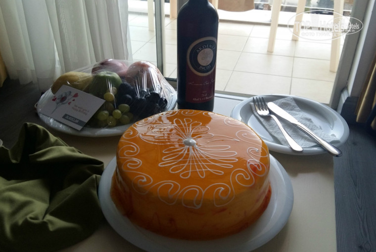 8.на день рождение в номере был комплемент в виде вина,фруктов и очень вкусного большого торта!