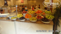 1. Отсутствие разнообразного питания,за 11 дней мы меню выучили как свои 5 пальцев)) и что интересно количесво (4 ) сладкого стола совпадал с горячими блюдами..лично мы не любители мясного,но уже овощи и пюрешка надоедали и брали пару раз котлетки на гриле,очень перченые много специй,а как то жарили печень,с виду на мясо похоже..так люди тарелками нагребали..пробывали и все это выкидывали..и вообще люди много берут и половину не съедают,а все из за того что можно не успеть попробовать..так как быстро все пустело и многие блюда не пополнялись!! Долго приходилось ждать пока пожарят рыбу или овощи в кляре...ну неужели нельзя перед открытием нажарить побольше!!! Очереди всегда за грилем и за мясными блюдами!! Фрутктов можно сказать нет,не считая старых апельсинов,твердых груш ну и более менее вкусных яблок,арбуза и дыни,мы их так и не попробовали..зеленоватый цвет отпугивал))Ах да..забыла.. еще был через день на ужин виноград! Если вы любитель яичницы и оладушек,то их делают после 8 утра..ранним пташкам не видать)) и то оладьи внутри вытекают..сырые короче,спешат быстрее пекут для народа)) В ресторане стоит искусственное дерево возле сладостей все в пыли,да такой конкретной..с начала сезона наверно пылиться!!