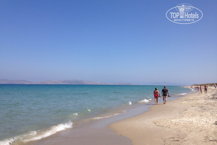 Мы ходили пешком по пляжу сначала влево до Мастихари - 80% пути приятный песок, ближе к Мастихари пришлось пару раз покарабкаться по горочкам, т.к. по берегу прохода не было. идти около 3.5 км, в Мастихари много таверн, есть магазин Константинос с адекватными ценами и огромным ассортиментом всего - суверниров в т.ч. Пляж в Мастихари хороший, но вход в воду (не знаю всегда так или нет) - два метра водорослей, и специфичный запах. Возле отеля заход в разы лучше. Из Мастихари ходит кораблик в Калимнос (6 евро если не ошибаюсь). Автобусная остановка около порта, удобно.