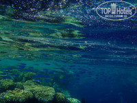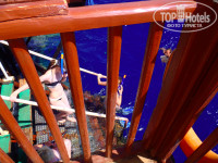 Вход в море с пирса по лестнице, сразу глубоко. Народу много поэтому в воде толкотня перед спуском и выходом. Много с ластами, масками, матрасами. Бывают пробки. Вообще как рекомендация: отелю необходим понтон, не большой, но он решит ряд неудобств и добавит кучу позитива для отдыхающих. Много старых и рваных пляжных полотенец.