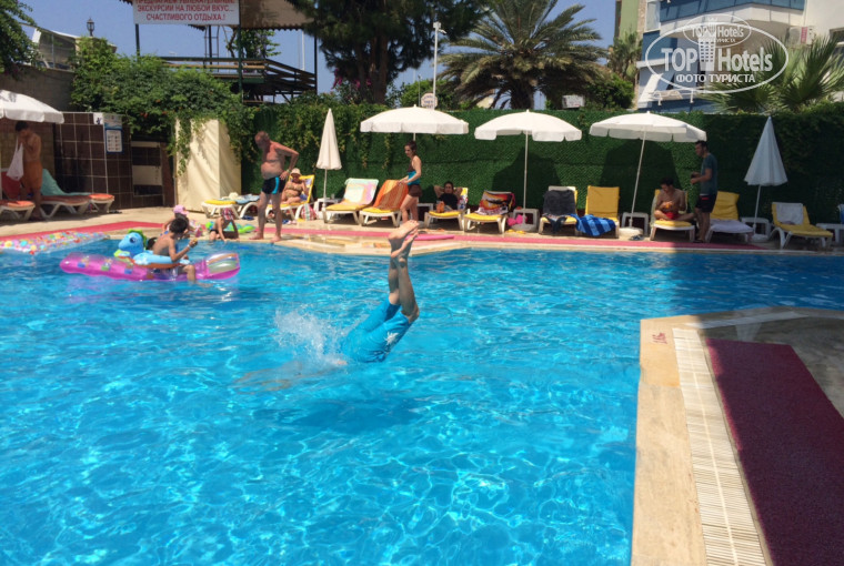 Мы поехали отдыхать по конце июля, начало августа на 7 дней. Первое, что очень бьет по впечатлениям это 5,5 часов от аэропорта до отеля. Очень долго и остановок нет. Приехав в отель нас вкусно покормили (еда на 5+, хоть некоторые и жалуются на маленький выбор). Номер явно не на 4*, да и сам отель внушает максимум 3*. У него два блока. Ресторан находится в первом, на 6 этаже. Бассейн неглубокий(1.60см), пиво ужасное, джин разбавленный, вино оставляет делать лучшего(но, кому как, конечно же). До моря есть подземный переход, что очень удобно. Галька, в море большие камни, так что купаться лучше в ночках или спец обуви(разодрала до кости ногу, когда волна снесла на глыбу под водой) вокруг ничего особо интересного нет, вкусный кальян рядом и шаурма. Ночью может разбудить мечеть, которая близко находится. Душ протекал и все врем была вода на полу, поэтому мы стелили полотенца. Интернет платный и уж очень плох. Сейф платный тоже, но он того стоит, ибо подворовывают. Понравился вид с балкона. То, что море рядом, идет ему в плюс, а проживание не соответствует своим звездам. Находится на самом краю Махмутлара, до центра минут 30-40 на такси.