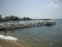 Отдыхали в нач. сентября 2015. понравилось всё, кроме пляжа, он полнейший отстой, его практически нет. Заход в море ужасен: булыжники, об которые можно ноги расцарапать, плита лежит. Начинается глубина, потом метров через пять опять мелководье по колено. Песка вообще нет. Море невероятно мутное и грязное. Поэтому для тех кому пляж важен - ищите другой отель. Молодёжи в отеле мало, в полночь уже все спят, хотя дискотеки в подвале до 2-х работают. Персонал вежливый, русскоговорящий (девушки-киргизки), пиво отличное. Анимация на высочайшем уровне, представления в амфитеатре каждый день, кроме воскресенья - от них мы тоже в полном восторге, программа не повторяется (раз в 14 дней). Территория огромная и красивая.