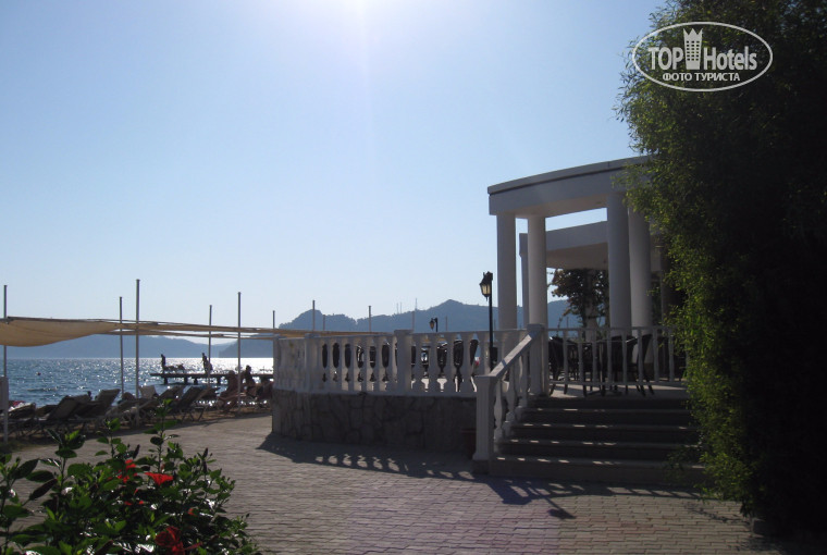 Но отель прекрасно расположен, он почти в раю) Первая линия в таком живописном месте - вот ответ, почему отдыхающих тут много и многие возвращаются снова и снова. Ну и цена. Чистейшее море, обалденные виды, покой и тишина. С утра море спокойно, как зеркало. Во второй половине дня даже когда штормит нет больших волн. Для детей супер. Теплое. Лежаков хватало всем ВСЕГДА. Очень большой пляж. Не нужно проявлять жлобство и столбить лежак камнем, ненужной тряпкой или полотенцем, растянутым на 2 лежака, причем круглосуточно. Реально бесил менталитет..