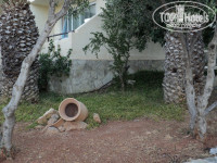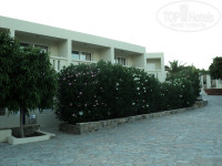 Территория отеля чистая, ухоженная, в стиле греческой, очень уютной деревеньки, даже маленькая церковь есть. Везде пальмочки, газончики, цветочки, кувшинчики. Даже гранатовые деревца. Бассейна два. Один с морской водой и хлоркой. Второй, наверно, для красоты. Я возле него ни кого не видела.