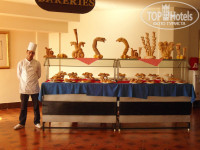 День добрый. В этом отеле с размещением возникли проблемы. Сначала заселили в старый номер. Далее предложили номер в нежилом корпусе с ломаной мебелью, где шли ремонтные работы. Таким образом меня напугали, и я уже согласилась на первый вариант. Далее возникли проблемы с едой. Почему-то практически везде была добавлена одна и та же приправа, которую съесть ну совсем не хотелось. Таким образом пришлось отдыхать впроголодь. За неделю отдыха в этом отеле так похудела, что по приезду пришлось объяснять что со мной случилось. Я уж не говорю, что те же листья салата были очень плохо мыты. Песок хрустел на зубах периодически, т. к. оставалось есть только зелень да булки. Слышала, что у многих отдыхающих были проблемы с желудком. Персонал очень привязчивый надоедают и на пляже, и стучатся в номер, и кричат что-то вслед... Номер практически не убирался. Уборщик все прикидывался, что не понимает что мы от него хотим. Так что как я въехала в номер с шелухой от семечек от предыдущих гостей, так из неубранного оттуда благополучно и отбыла. Также удивил местный приставучий и на пляже и у бассейна«сервис» по уходу за волосами, ногтями, и т. д. Этот «мастер», как оказалось, был и парикмахером, и маникюршей, и массажистом, и все чем не попадя. Только тишь бы платили деньги. Естественно, что профессионалом не в одной области он не был. Был момент на рецепшене. После вечерней программы мы забыли на спинке стула мешочек с вновь приобретенным платьем в магазине отеля. Дойдя до номера, и вспомнив о нем мы тут же вернулись, но... На месте его не оказалось, никто его не видел. И только со скандалом на следующий день вернули «найденное» платье. Так что персонал как может, так живет. Приятные воспоминания остались от цветущей территории отеля, да и конечно моря. Риф у отеля просто сказочный. Очень хорошо, что рядом с берегом сразу большая глубина. Но для детей это конечно же минус. Вот так вот и отдохнули.